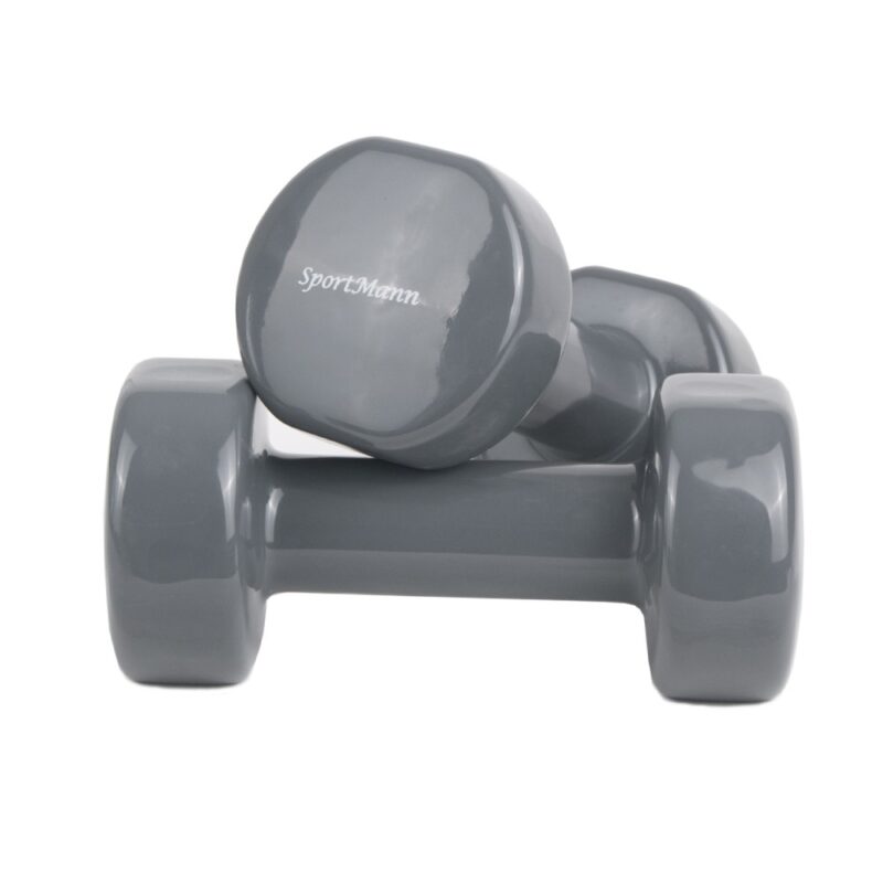Set gantere aerobic 8kg fabricate din metal acoperit rasina epoxidica. Greutate: 2 x 8kg. Culoarea gri, forma hexagonala.