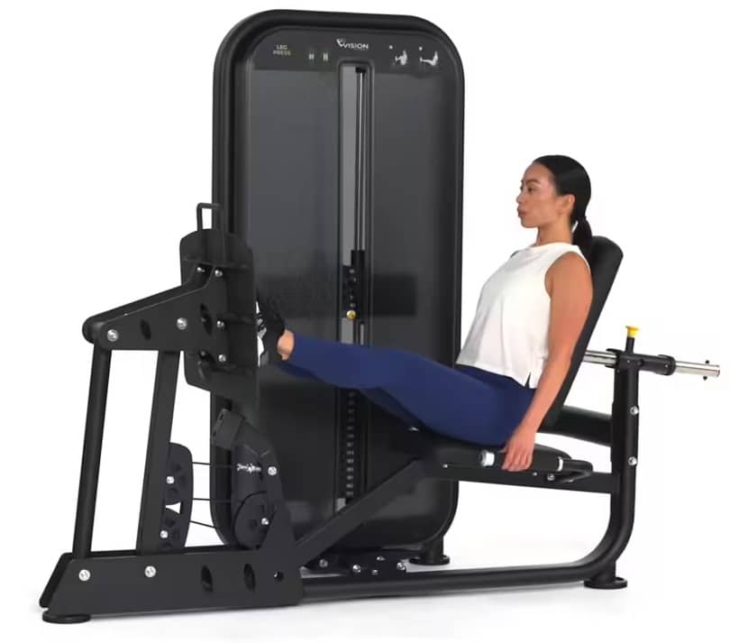 Presa picioare Vision Fitness are un design ergonomic ușor de reglat face ca aproape oricine să se așeze confortabil și să înceapă antrenamentul.